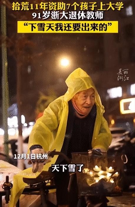 凌晨的杭州街头,一位91岁的老人在顶着风雪,捡废品。